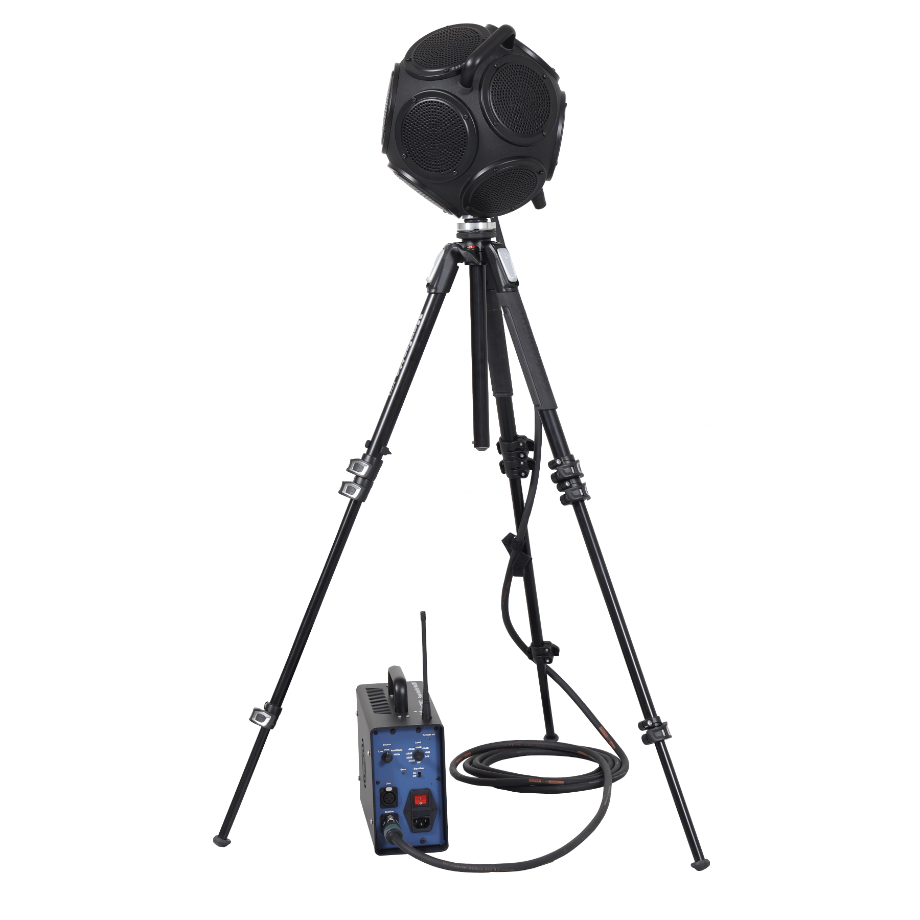Høyttaleren leveres med et høykvalitets stativ som sikrer riktig plassering slik at uønskede refleksjoner og strukturelle overføringer holdes på et minimum. Inne i det 25 mm stativrørfestet på høyttaleren, er det en 8 mm skrue med gjenger som gjør at høyttaleren enkelt kan monteres opp/ned i et ekkofritt rom eller lignende.